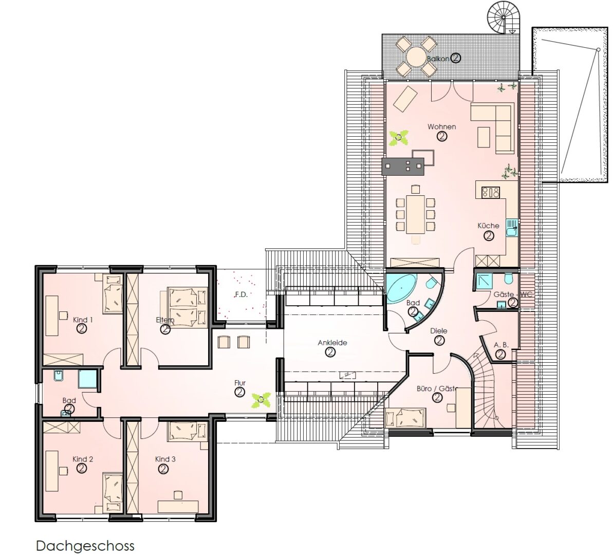Das Gebäude wurde im Laufe der Zeit fortlaufend ausgebaut und erweitert und präsentiert sich heute in seiner gewachsenen, funktionalen Struktur mit vielfältigen Nutzungsmöglichkeiten. Durch die vorhandenen separaten Einheiten lassen sich unterschiedliche Lebens- und Wohnkonzepte gut miteinander verbinden – beispielsweise für Familien, die Wohnen, Arbeiten und Vermietung kombinieren möchten oder für Angehörige verschiedener Generationen, die nah beieinander wohnen möchten.