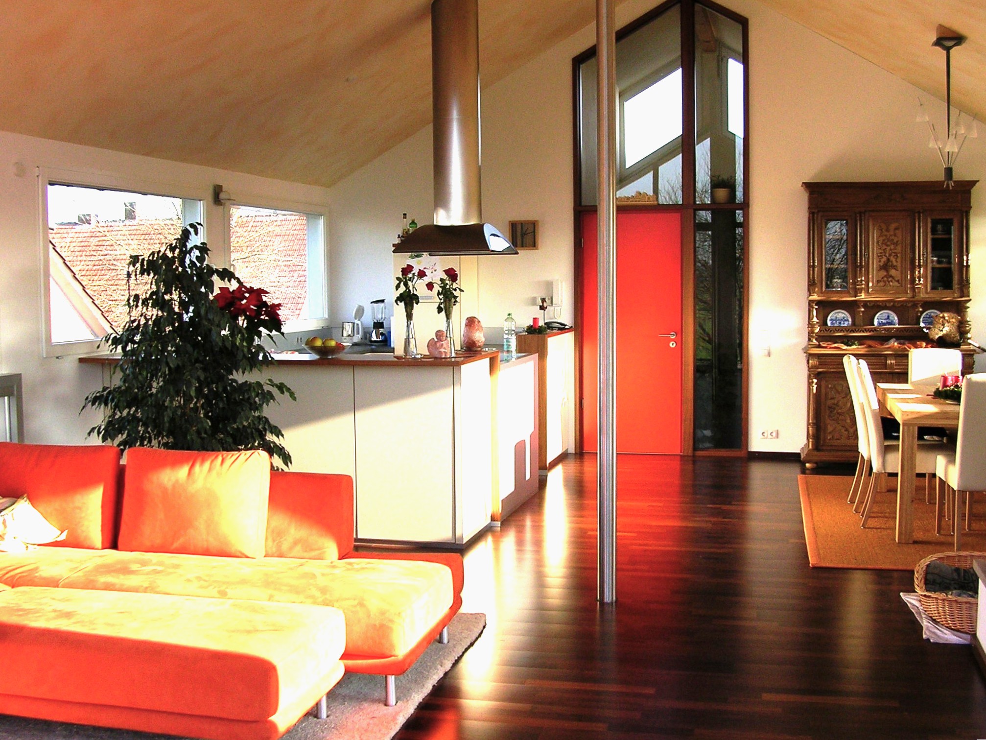 Die Dachgeschosswohnung präsentiert sich hingegen mit einem ganz besonderen Wohncharakter. Durch die großzügige Gestaltung und die offene Raumwirkung entsteht hier ein Wohngefühl mit nahezu Penthouse-Charakter. Die charmante Architektur mit ihren individuellen Raumstrukturen verleiht der Wohnung einen besonderen Wohnwert und macht sie zu einem attraktiven Rückzugsort für Paare oder anspruchsvolle Eigennutzer.