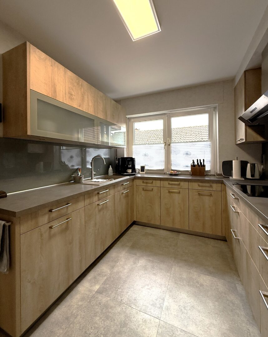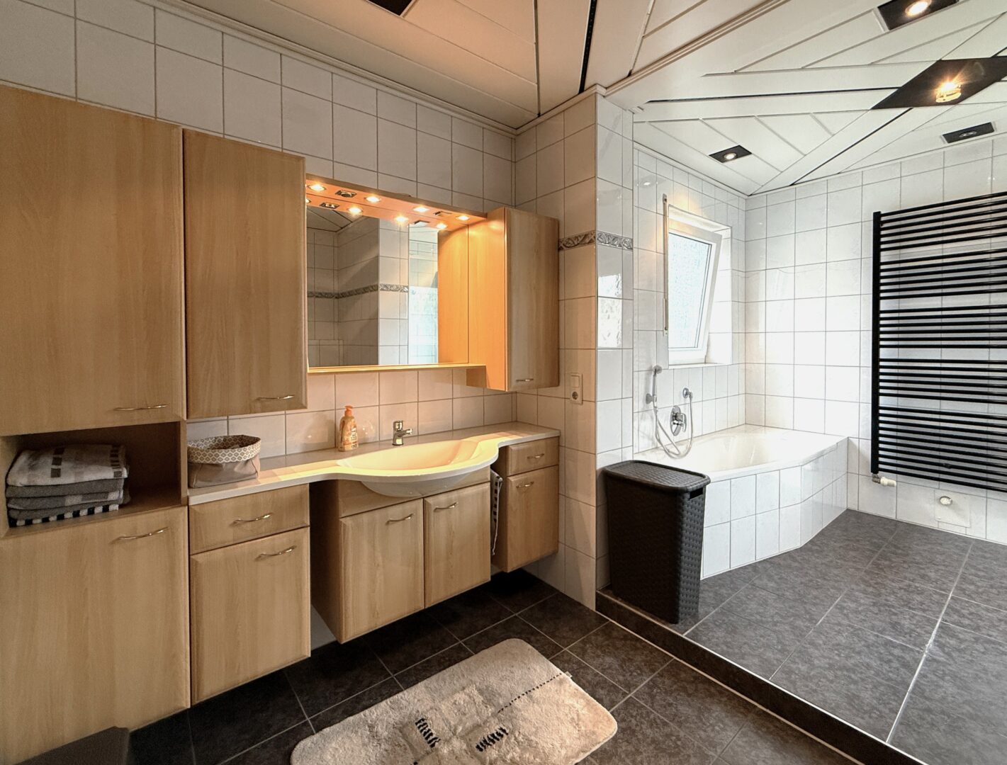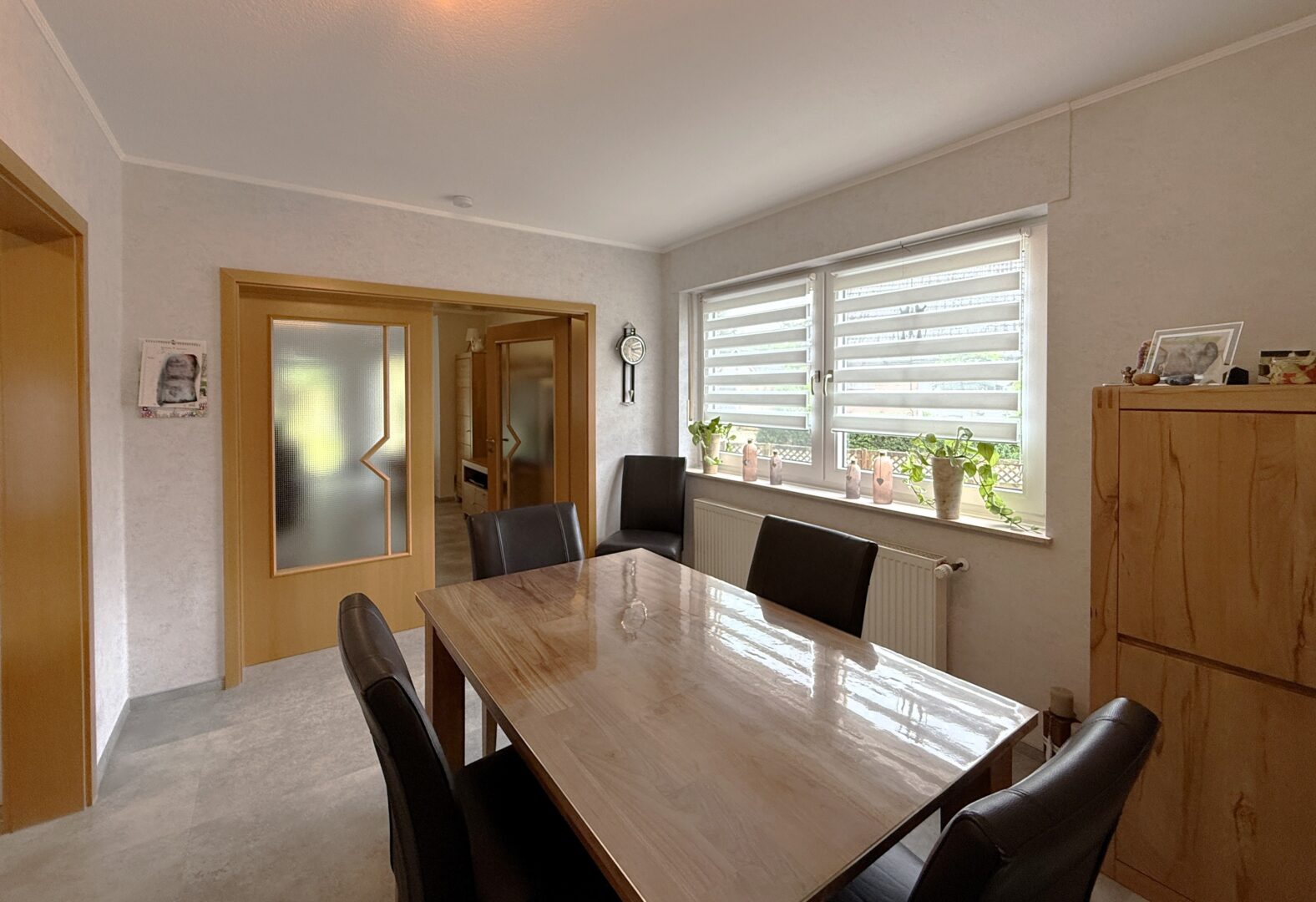 Willkommen in Ihrem neuen Zuhause. Dieses gepflegte Einfamilienhaus vereint zeitlose Architektur mit moderner Wohnqualität. Das ruhig gelegene Grundstück mit einer Fläche von ca. 385m² bietet Ihrer Familie einen liebevoll angelegten Garten mit viel Platz zur freien Entfaltung. Die Immobilie befindet sich in einem sehr guten Zustand, es besteht kein Renovierungsbedarf. In den letzten Jahren wurden die Elektrik, die Heizung, die Küche und teilweise die Böden erneuert. Im Jahr 2001 wurde eine umfangreiche Baumaßnahme durchgeführt, durch die der Wohnbereich um einen Wintergarten, der Eingangsbereich um ein Gäste-WC sowie das Bad im Obergeschoss erweitert wurden. In diesem Zuge wurden auch die Fenster und das Dach erneuert. Durch den neu geschaffenen Eingangsbereich geht es vorbei an der Garderobe und dem Gäste-WC entweder direkt in die Küche mit angrenzendem Esszimmer oder in den stimmungsvollen Wohnbereich, der zum gemütlichen Verweilen vor dem Kamin einlädt und einen tollen Blick in den Garten gewährt. Die überdachte Terrasse bietet auch bei schlechtem Wetter Schutz und Behaglichkeit. Zudem befindet sich im Erdgeschoss ein praktischer Abstellraum für Vorräte und Haushaltsgeräte. Das Obergeschoss verteilt sich auf drei Schlafzimmer, eines davon mit direktem Zugang zum großzügigen Balkon, sowie einem großen Badezimmer mit Badewanne, Dusche, WC und Waschbecken. Die Räume bieten allesamt ein tolles Raumgefühl und gute Stellmöglichkeiten für Kleiderschränke und Möbel, da Sie hier keine Dachschrägen vorfinden. Das zum Wohnraum ausgebaute Dachgeschoss bietet zudem ein weiteres großes Zimmer, was als Büro oder zusätzliches Schlafzimmer genutzt werden kann. Zudem befindet sich angrenzend ein weiteres Bad mit Dusche, WC und Waschbecken. Im Kellergeschoss befindet sich neben dem Heizungsraum, einem Wasch- und Lagerraum noch ein zusätzlicher Hobbyraum, sodass Sie hier vielfältige Lager- und Gestaltungsmöglichkeiten haben.