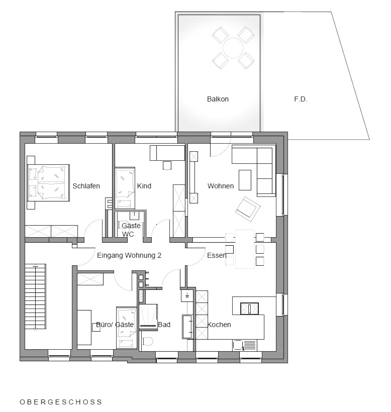 Diese außergewöhnlich großzügige Etagenwohnung vereint modernes Wohnen mit höchstem Komfort und einer Traum-Dachterrasse. In einem gepflegten, neuwertigen Mehrfamilienhaus (3 Wohneinheiten) gelegen, bietet diese Immobilie die perfekte Kombination aus urbaner Nähe und naturnahem Rückzugsort. Wir bieten Ihnen eine hausgroße Etagenwohnung mit 2 Schlafzimmern + Büro, Gäste-WC, Tageslichtbad mit Dusche, Abstellraum im Keller und spektakulärer Dachterrasse an. Die Räumlichkeiten verteilen sich auf insgesamt ca. 128m² Wohnfläche und bieten ausreichend Platz für die ganze Familie und die Verwirklichung Ihrer Wohnideen. Es erwartet Sie ein durchdachtes Raumkonzept mit hellen, großzügigen Zimmern und einer offenen, einladenden Wohnatmosphäre. Herzstück der Wohnung ist der weitläufige Wohn- und Essbereich mit vielen Fenstern, die für ein lichtdurchflutetes Ambiente sorgen und direkten Zugang zur ca. 23m² großen Dachterrasse bieten. Vom geräumigen Flur ausgehend erreichen Sie alle Räumlichkeiten ohne Umwege. Ein Highlight ist sicherlich der sichtbare Träger im Wohn-/Essbereich, der in Verbindung mit dem Echtholzboden einen modernen Look und zugleich eine gemütliche Atmosphäre schafft. Zudem wurde großen Wert auf die Verarbeitung hochwertiger Materialen gelegt. Die Kombination aus den großformatigen Feinsteinzug-Fliesen und dem hochwertigen Echtholzparkett verleiten der Wohnung einen Hauch von Luxus. Die Wohnung ist Teil eines Bauprojektes, was die Kernsanierung eines Gebäudes aus dem Jahr 1961 umfasst. Sie erwerben eine Immobilie im Neubaumaßstab, sowohl die Energieeffizienz, Technik als auch die Ausstattung betreffend. Zur Wohnung gehören zudem zwei Pkw-Stellplätze. Die Fahrradgarage ist gemeinschaftlich nutzbar, sodass Sie ihr E-Bike hier sicher abstellen können.
